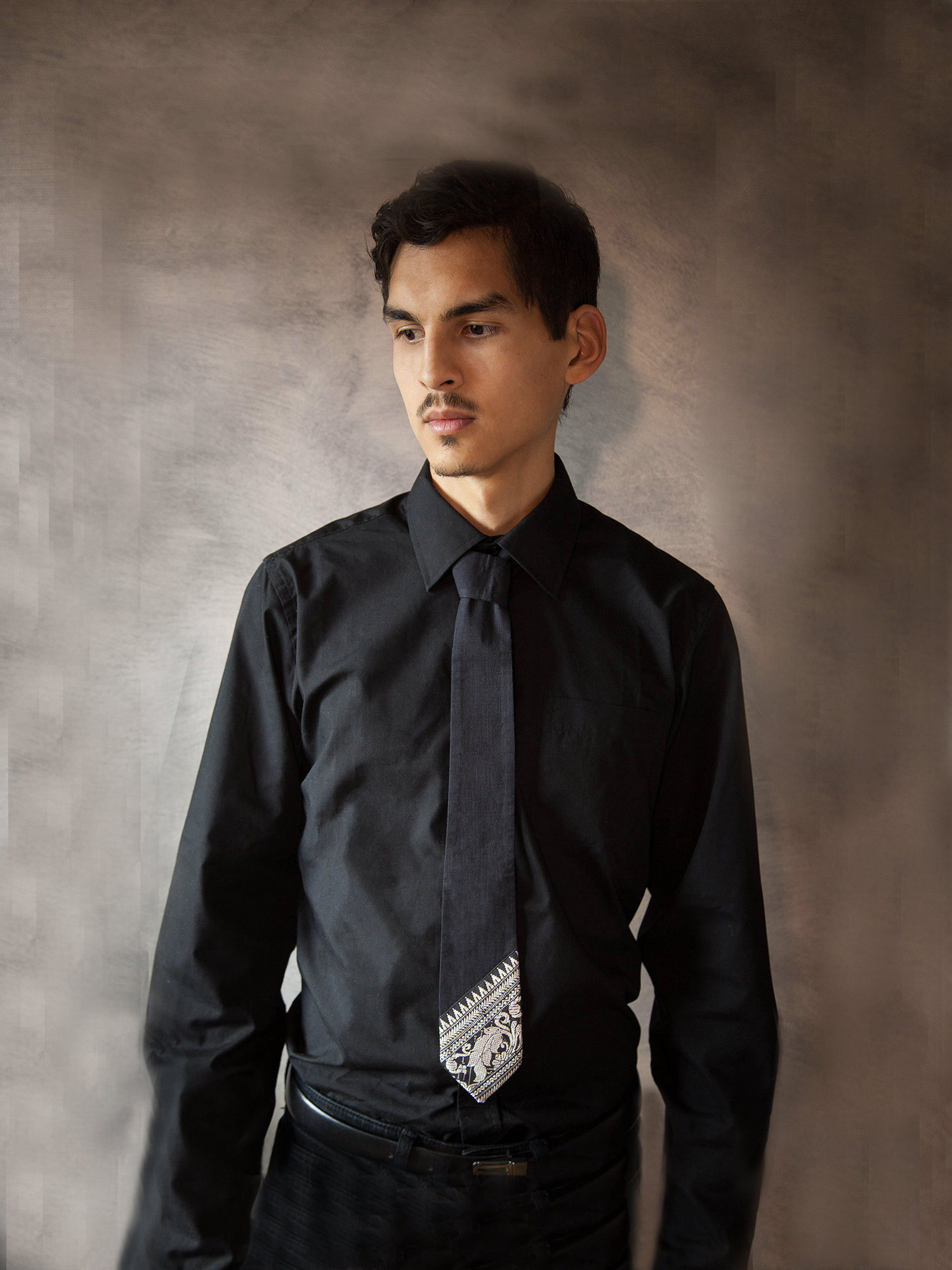 The ties had just been finished when we did our photo shoot for Vagabond. The model was our favorite world-traveling maverick, photographer and documentary film-maker Sri Kolari, and the photographer for the shoot was Samvit Blass, creator and executive at Light Fish Designs.